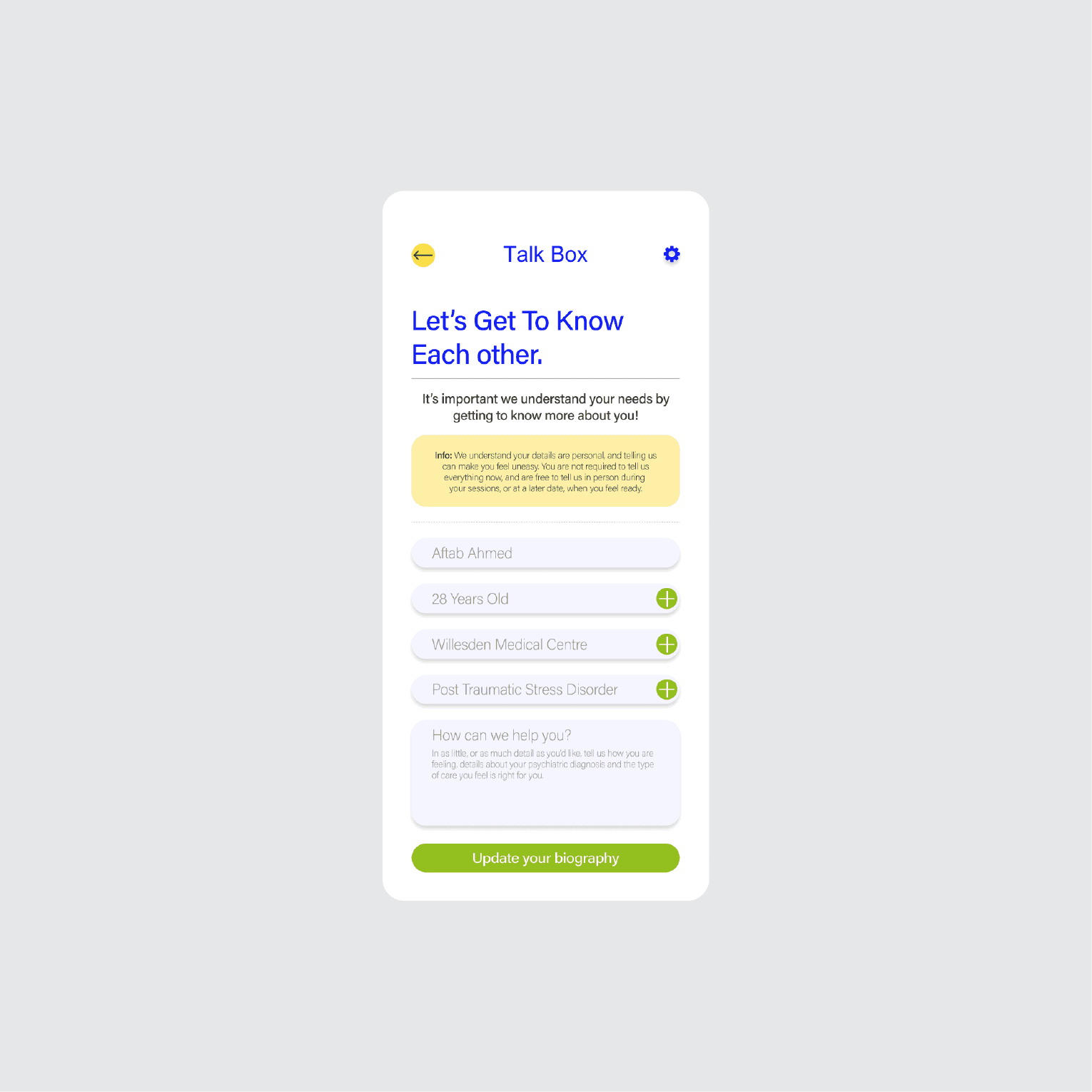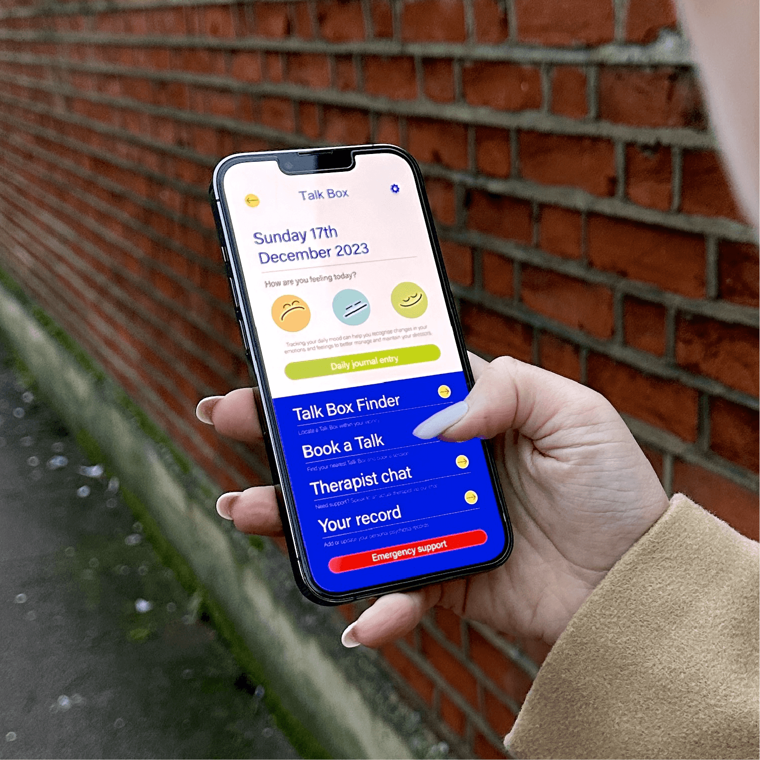 Research revealed that 59.4% of people in the UK experience depression, with long NHS wait times delaying access to care. Talk Box was developed as a patient-first digital platform to improve access to timely mental health support.